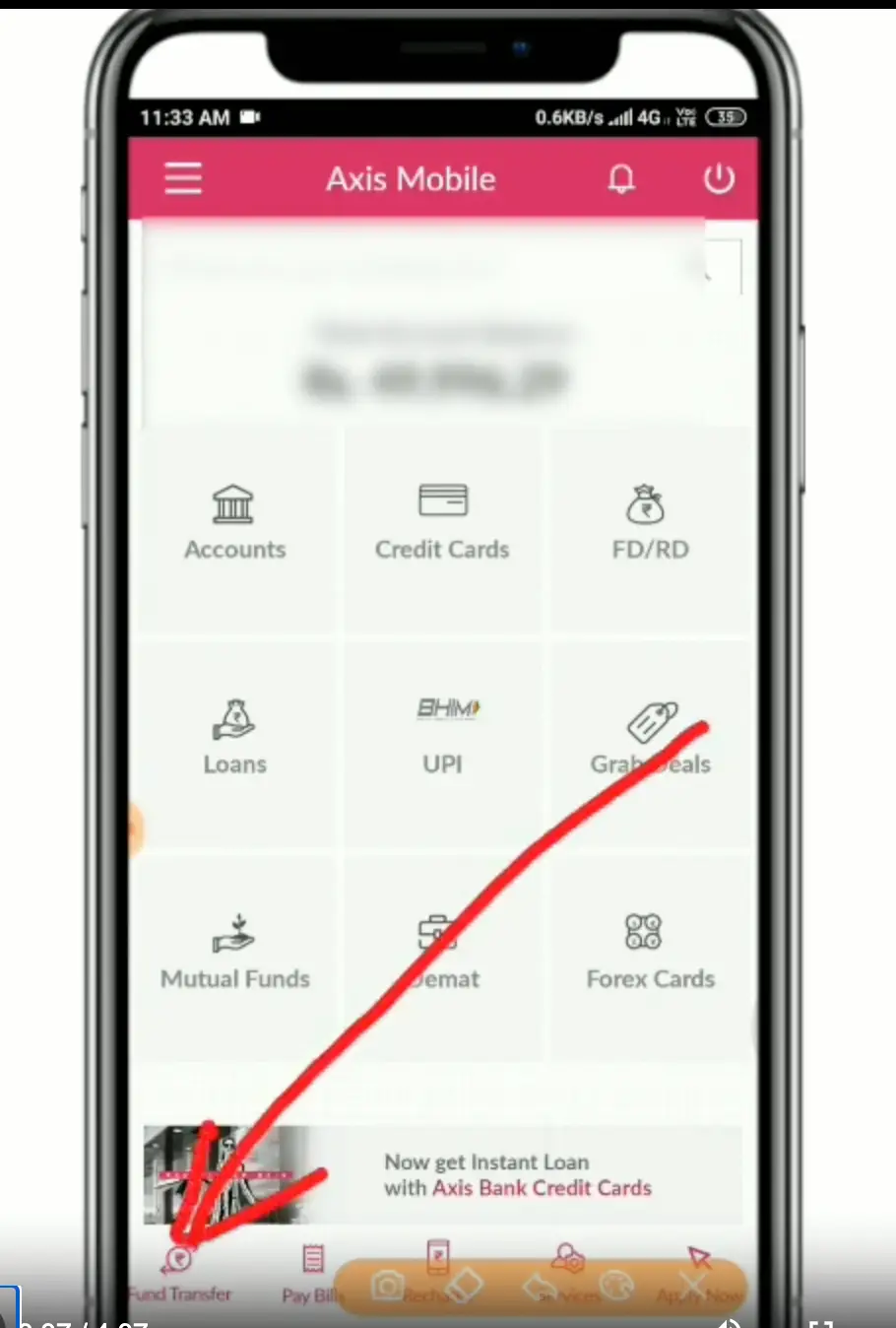 Step 1: Open your Axis bank app, look for the option “Fund Transfer”.