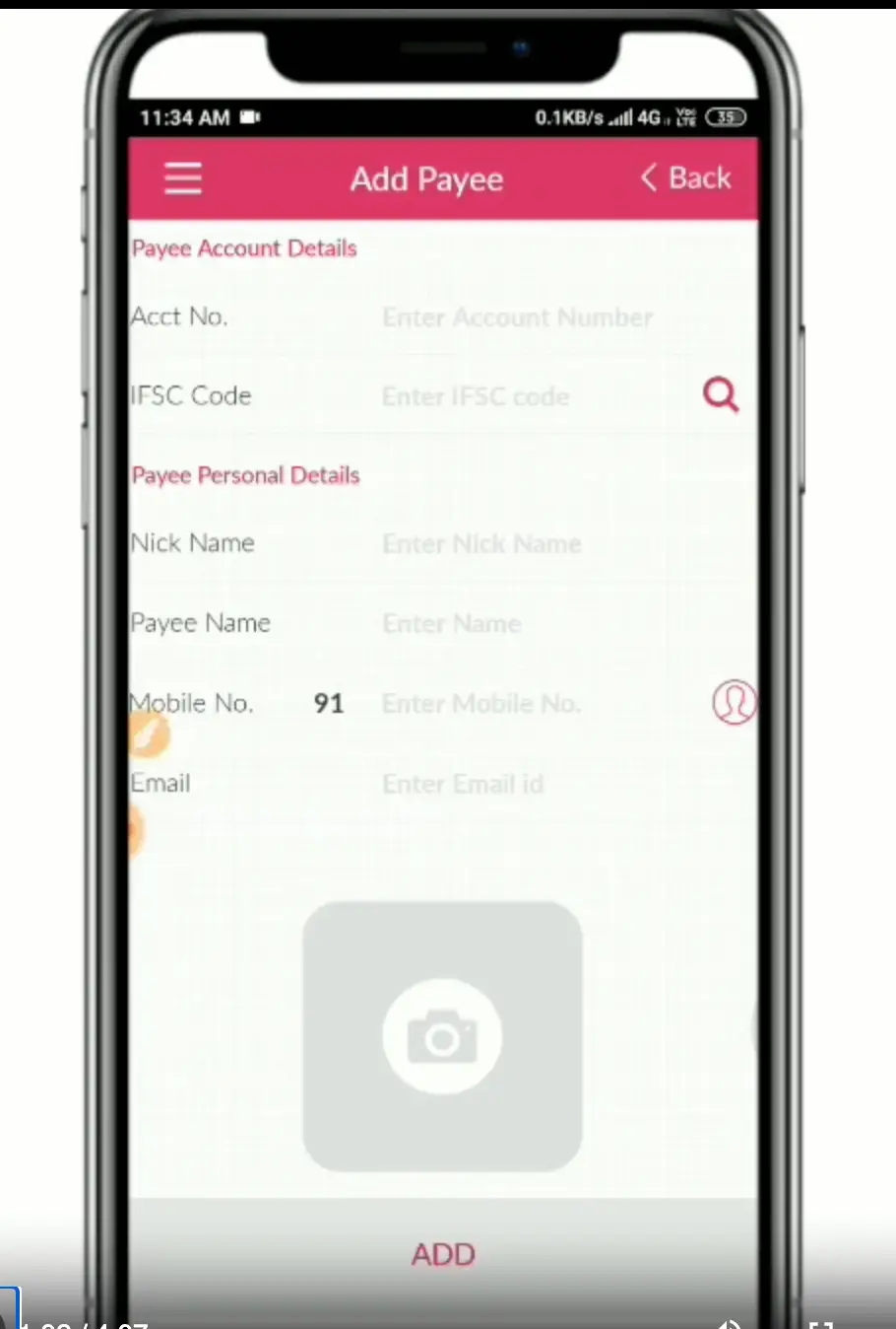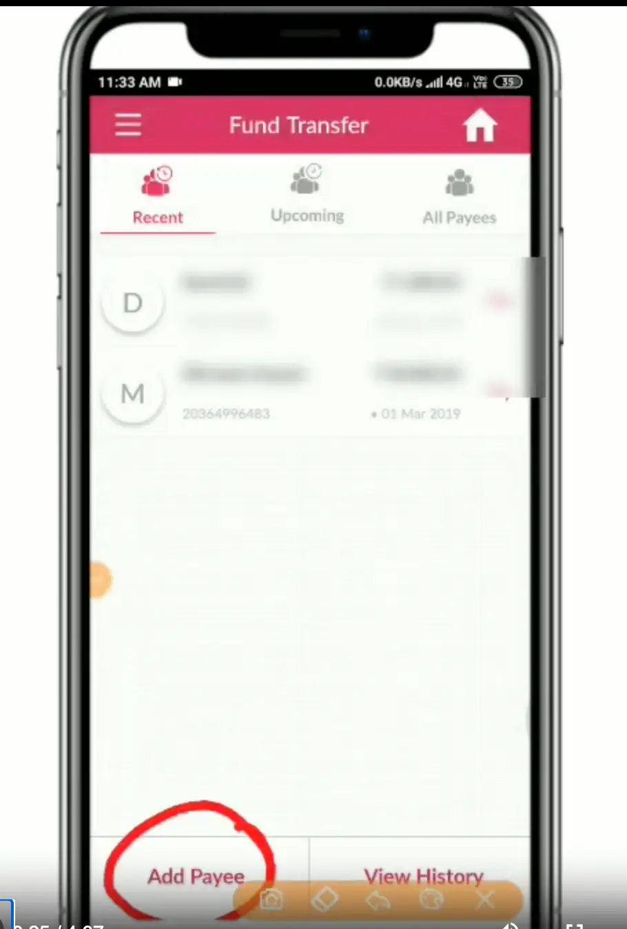 Step 2: Select option “Add Payee” to transfer funds to another bank account.