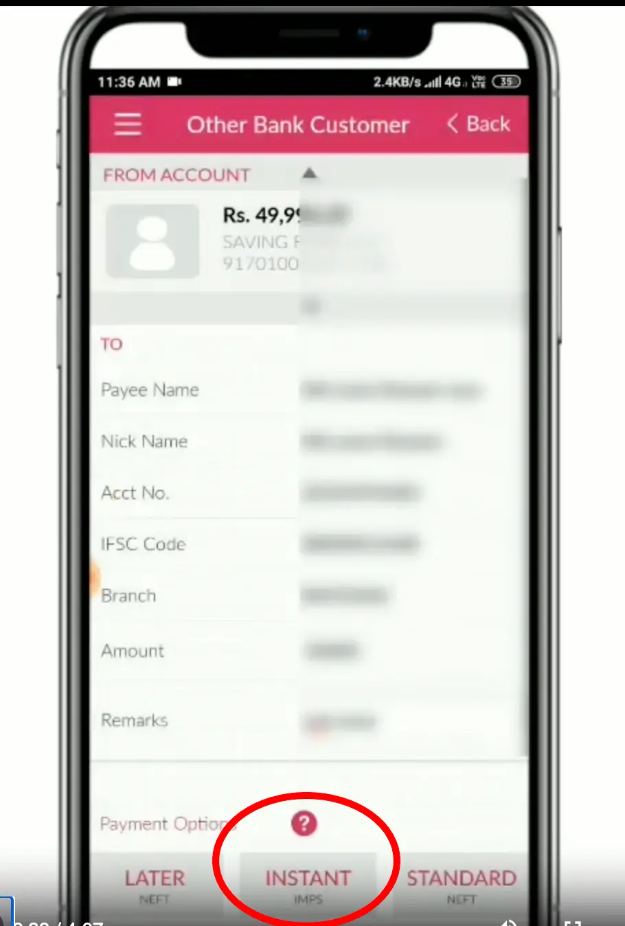 Step 4: Enter Desired amount to pay and select INSTANT option.