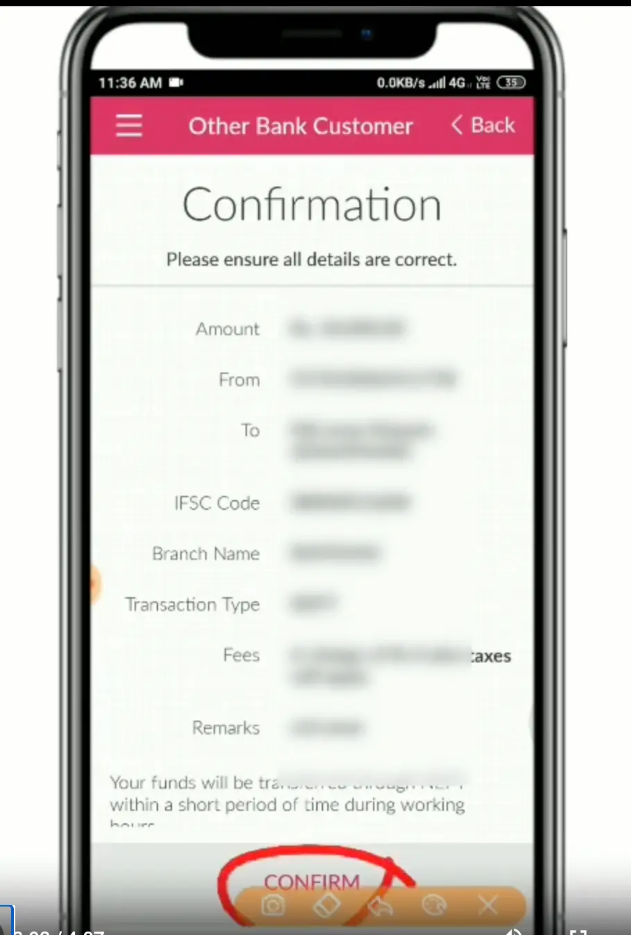 Step 5: Verify the details and amount, and hit the CONFIRM button.