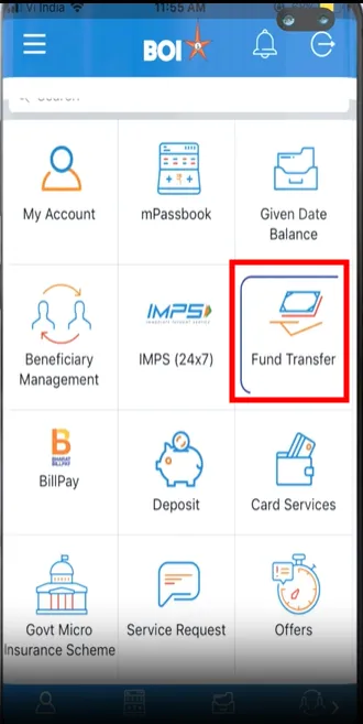 Step 1: Open your Bank of India app, look for the option “Fund Transfer”.