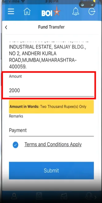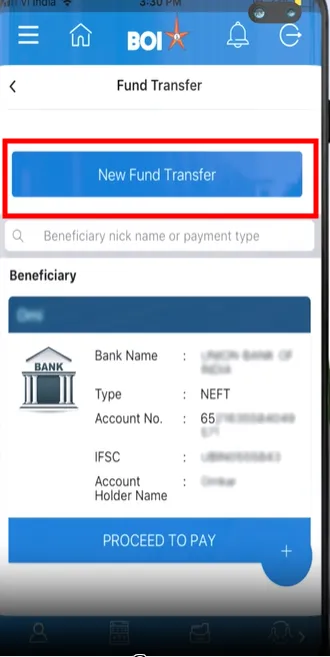 Open your Bank of India app, look for the option “Fund Transfer”.