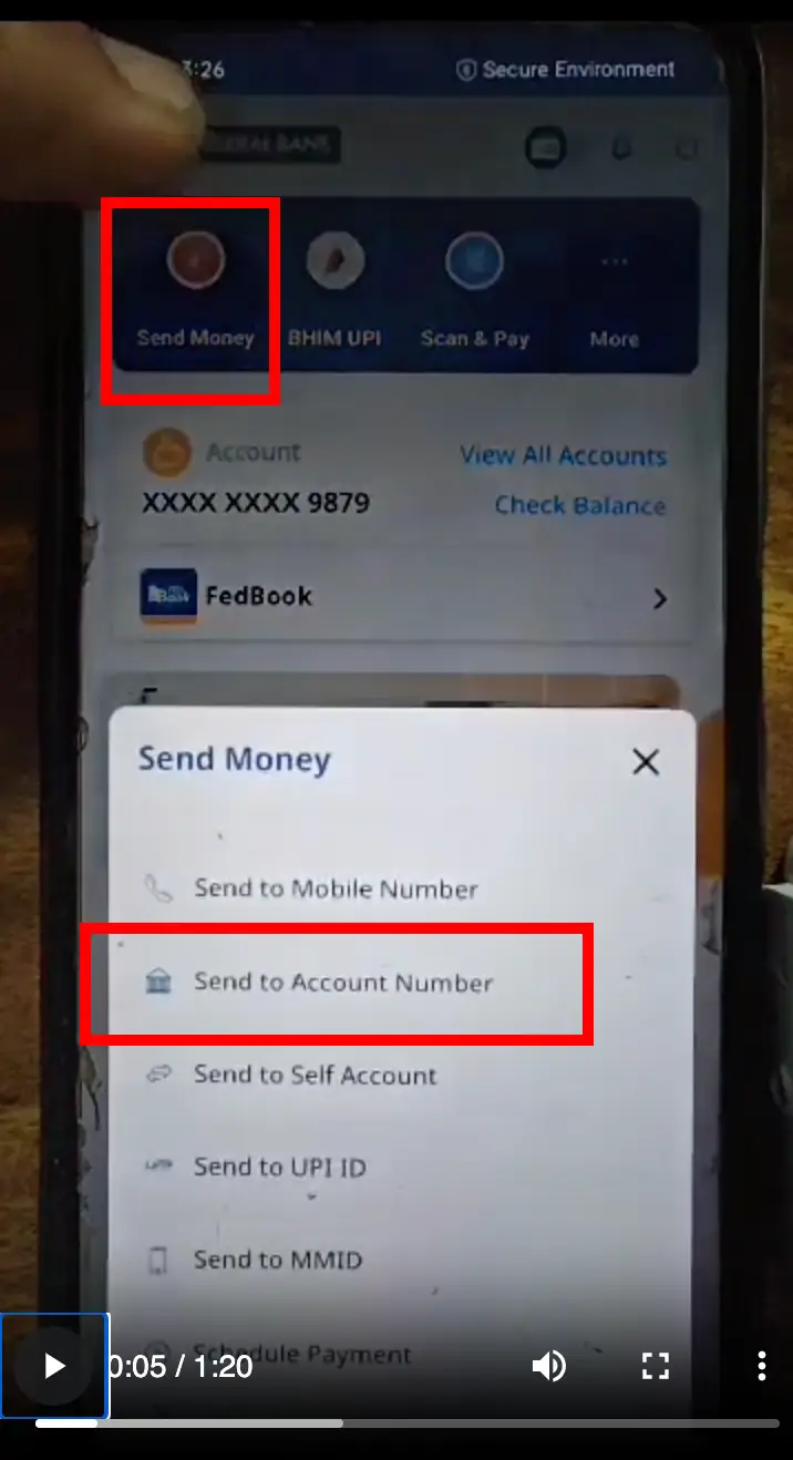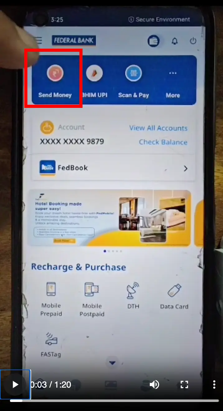 Step 1: Open your Federal bank app, look for the option “Send Money”.