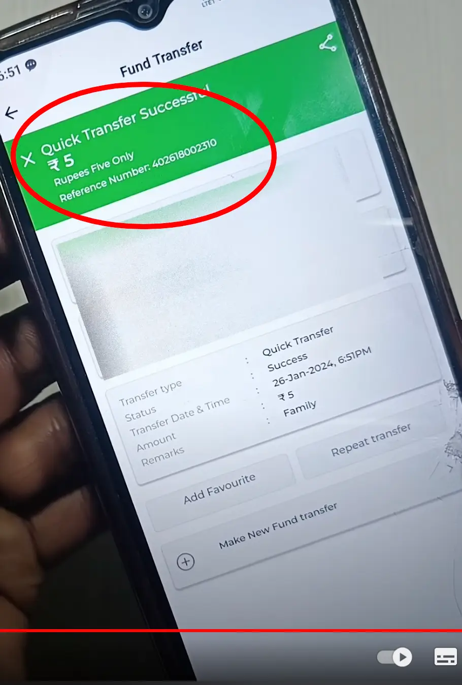 Go to Quick Transfer, enter bank account and IFSC number and Receiver’s name.