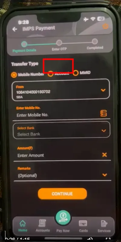 Step 3: Select the Account number option from these three and fill the details if you have already added the beneficiary.