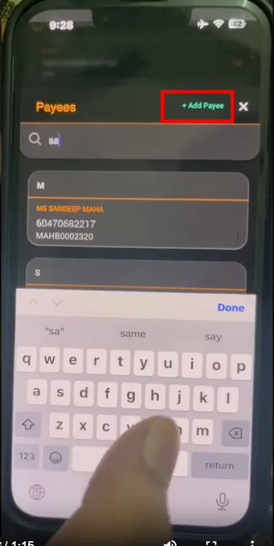 Step 4: If you want to add new Payee, click on the green link for “Add Payee” and update all the details for receiver like name, IFSC. Enter Desired amount to pay.