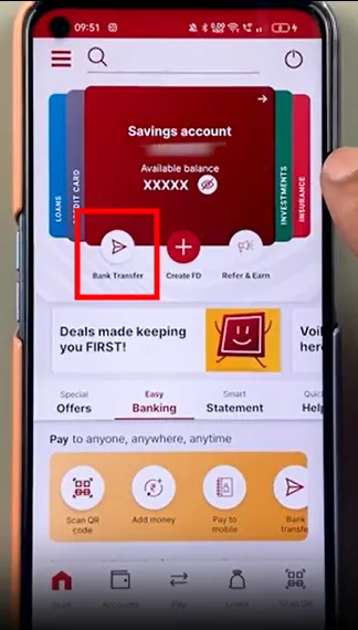 Step 1: Open your IDFC bank app, look for the option “Bank Transfer”.