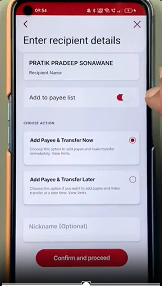 Step 4: Select from the options “Add Payee now Or later” and proceed it.