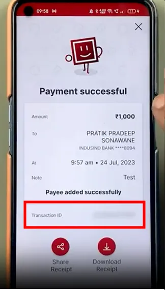 Step 6: Copy Transaction ID and now you can use this ID on website or wherever needed.