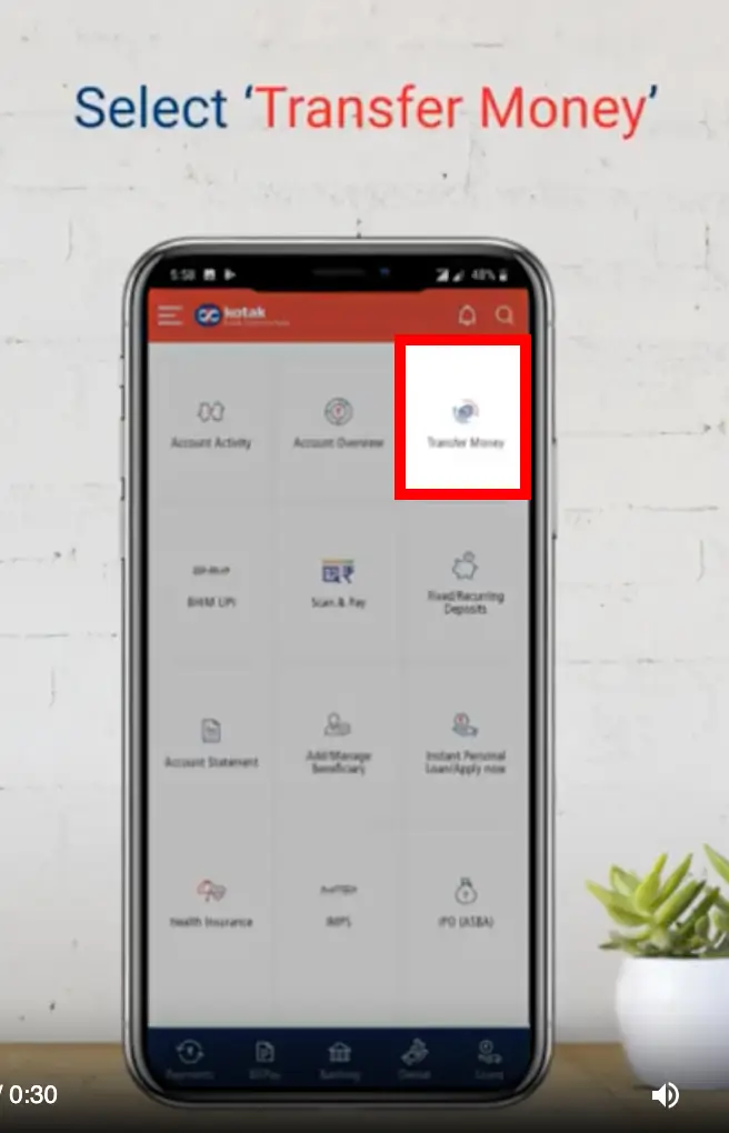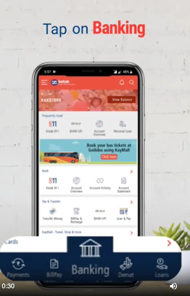 Step 1: Open your Kotak bank app, look for the option “Banking”.