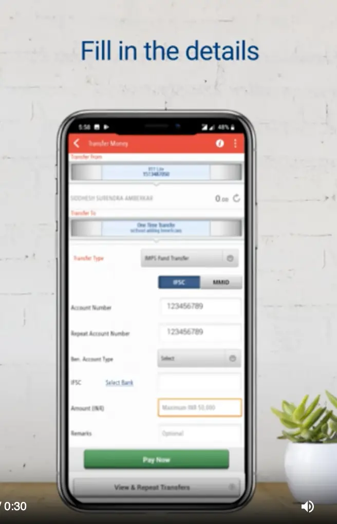 Enter Bank account and IFSC number and Receiver’s name. Enter Desired amount to pay.