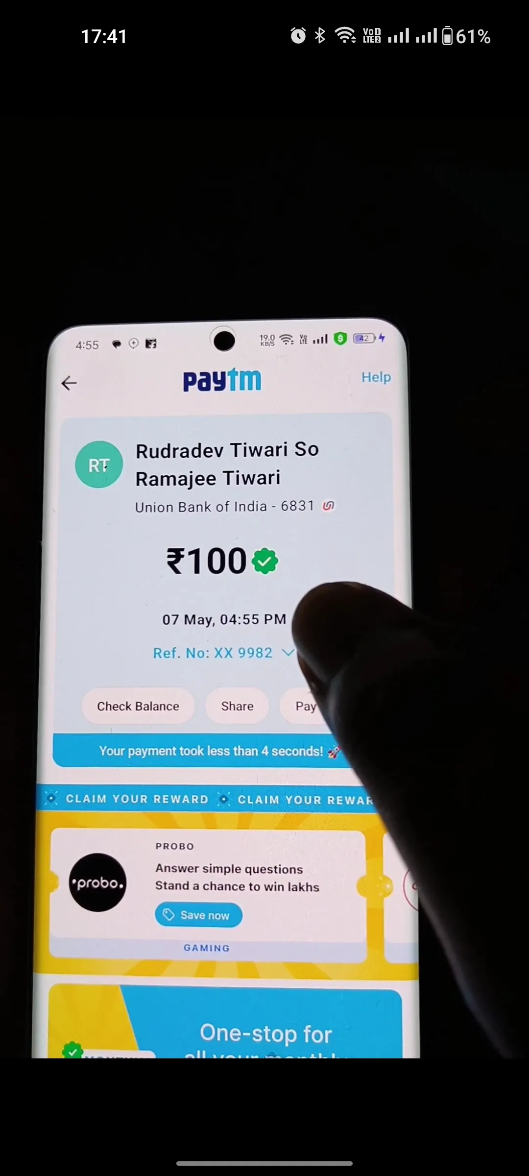 Step 5: After sending payment click on ref. no. arrow icon for UTR ID.