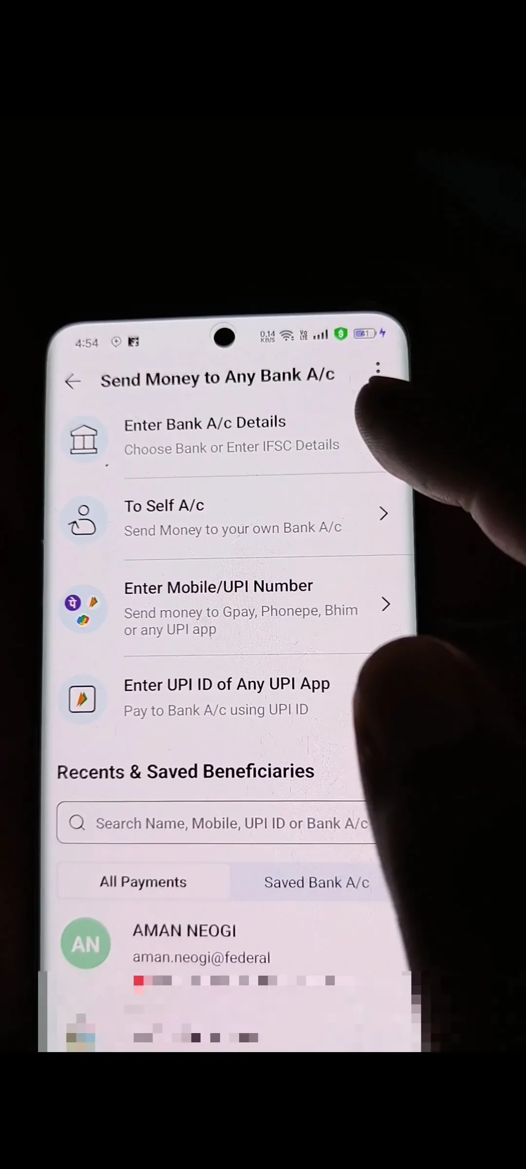 Select option “Enter Bank A/c Details” to transfer funds to another bank account.