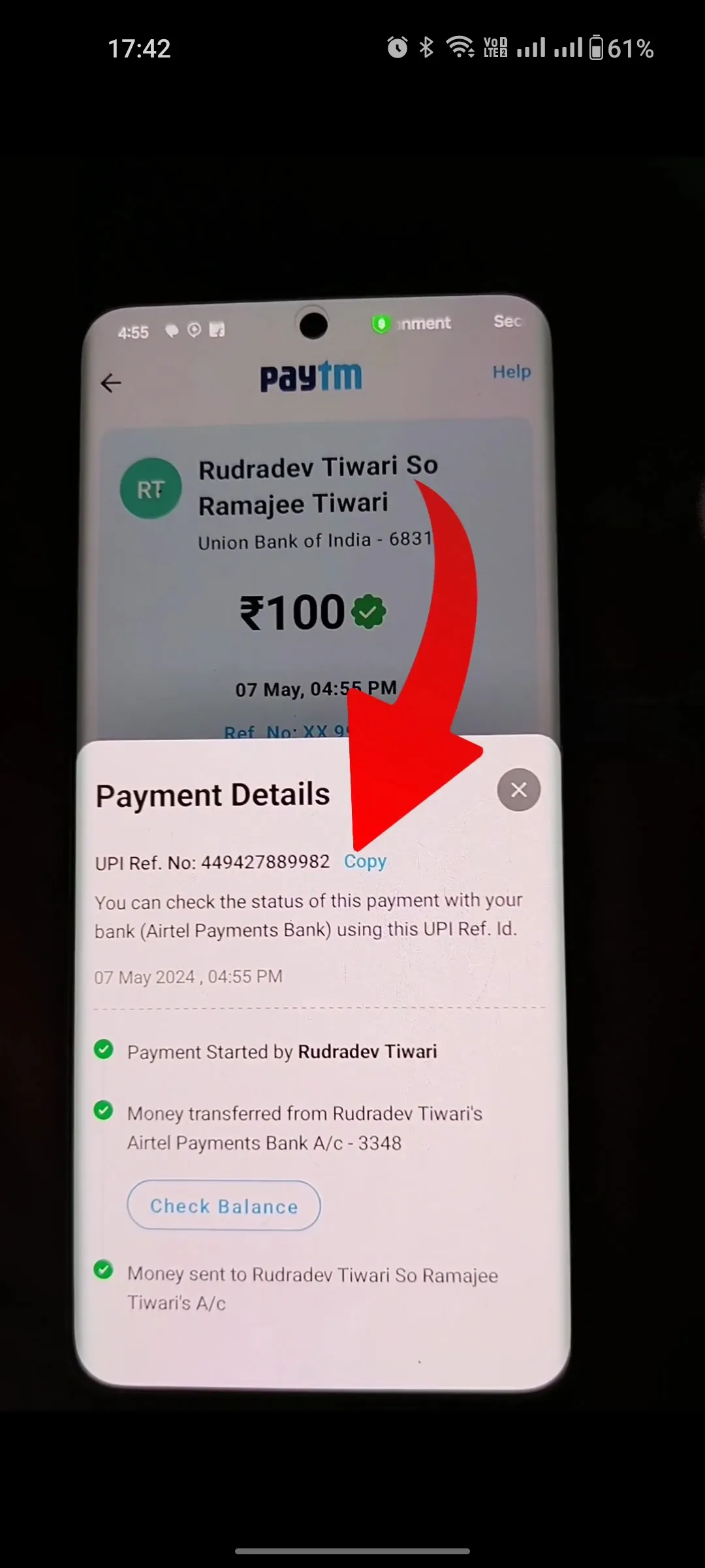 Copy UTR / UPI Ref. no. and now you can use this UTR on website or wherever needed.