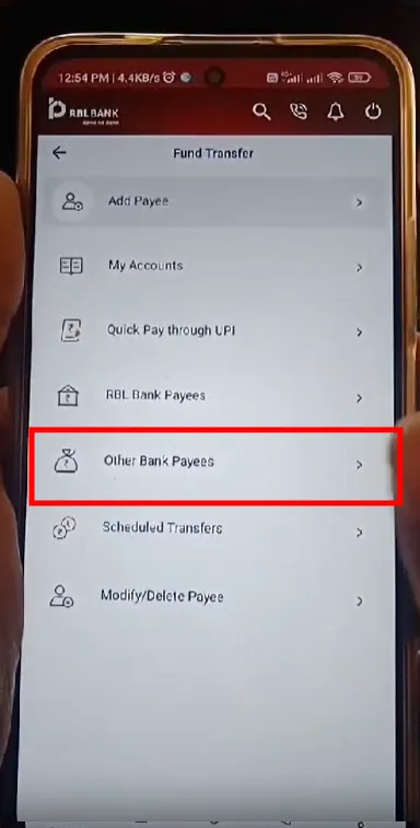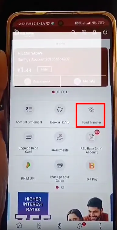 Step 1: Open your RBL bank app, look for the option “Fund Transfer”.